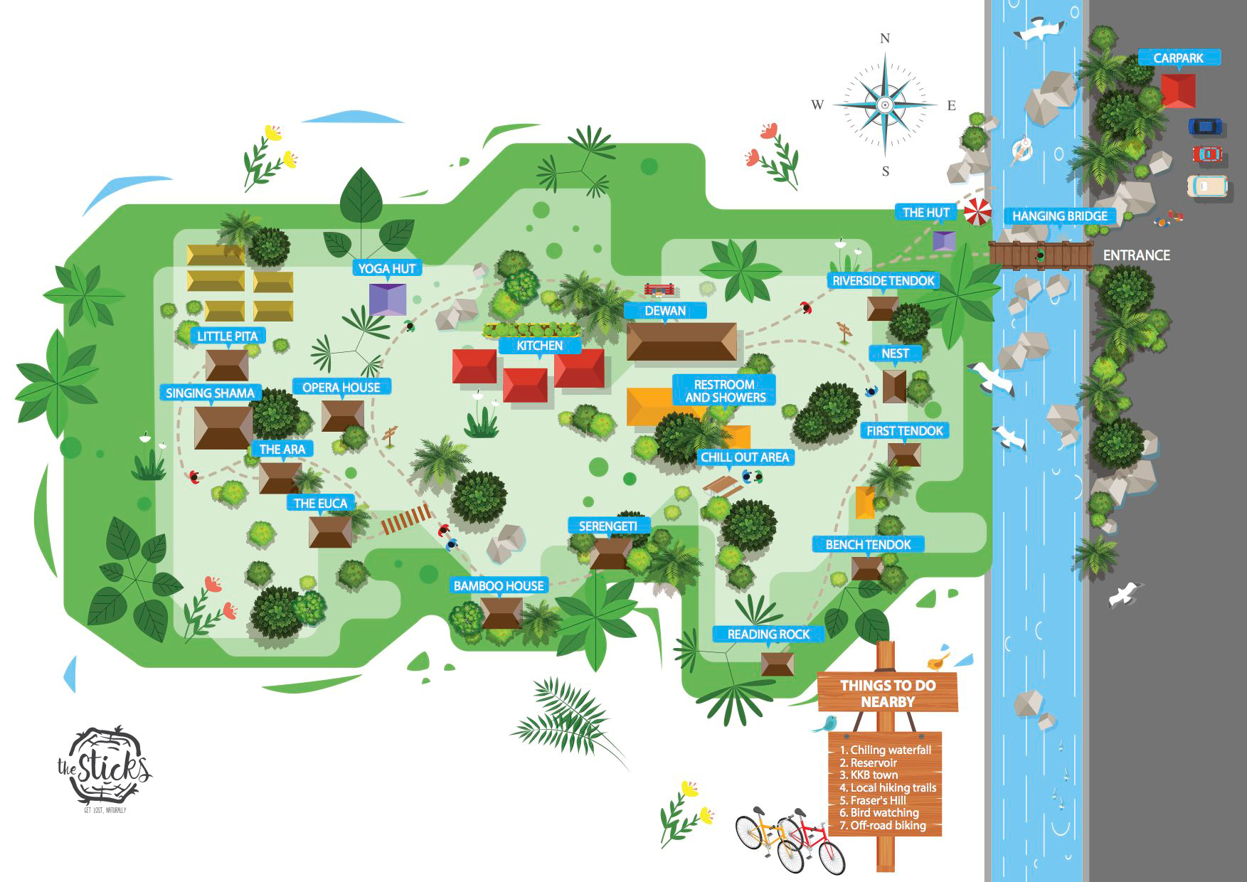 Between water and the lush green forest, surrounded by a river, here you will find The Sticks. Your stay will be immersed in nature at every corner.